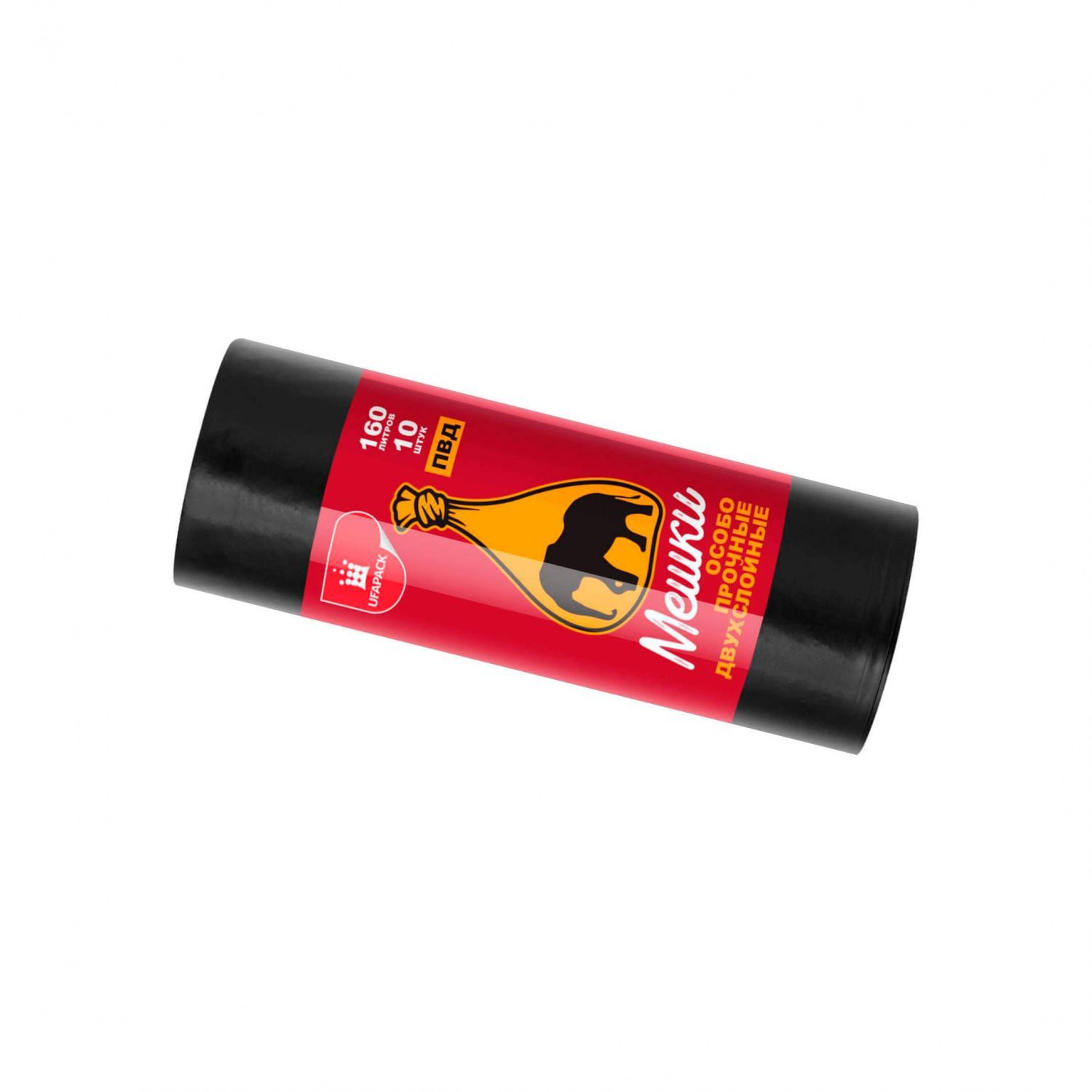 Мешки для мусора 160 л, черные, рулон 10 шт., ПВД, 35 мкм, 1100х900 мм, Уфа Пак, МВ3940 (МВ 160-10ч)