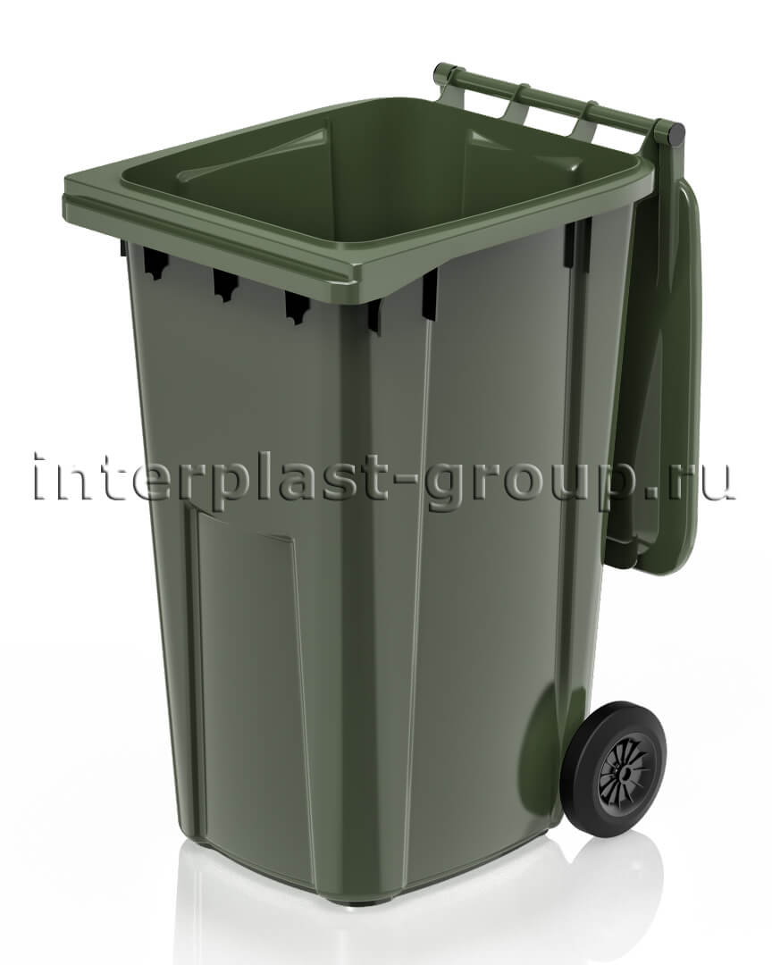 Благодаря надёжной конструкции и колёсам, даже полностью загруженный мусорный контейнер уличный легко перемещается. Зелёный цвет символизирует экологичность, поэтому контейнер часто используют как контейнер для сбора ТБО и ТКО.