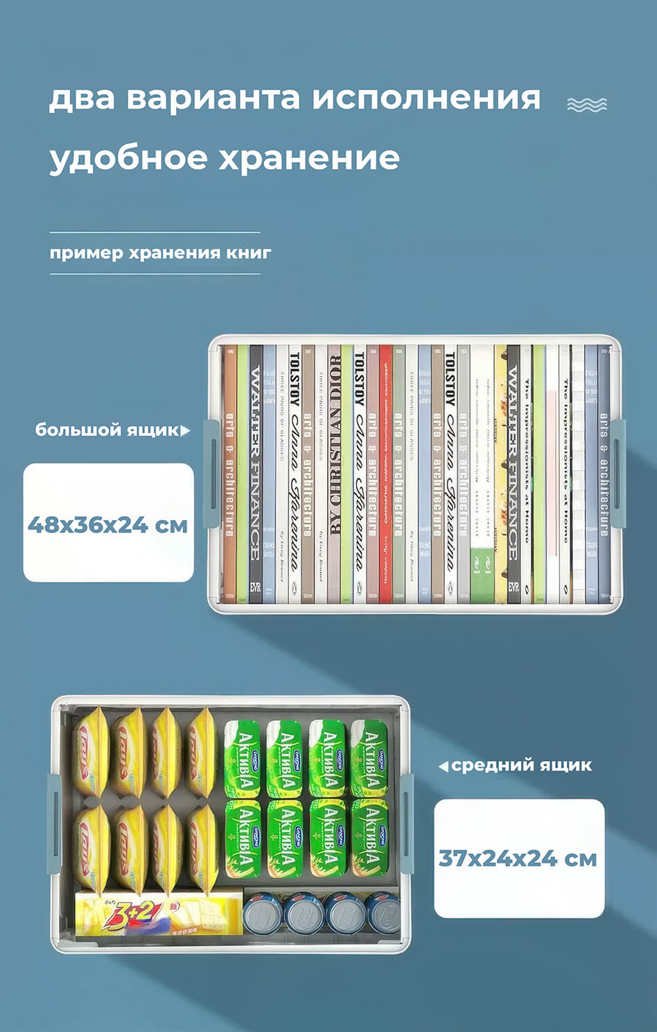 Складной ящик 480х360х240 мм, бело-голубой – стильное и практичное решение для хранения