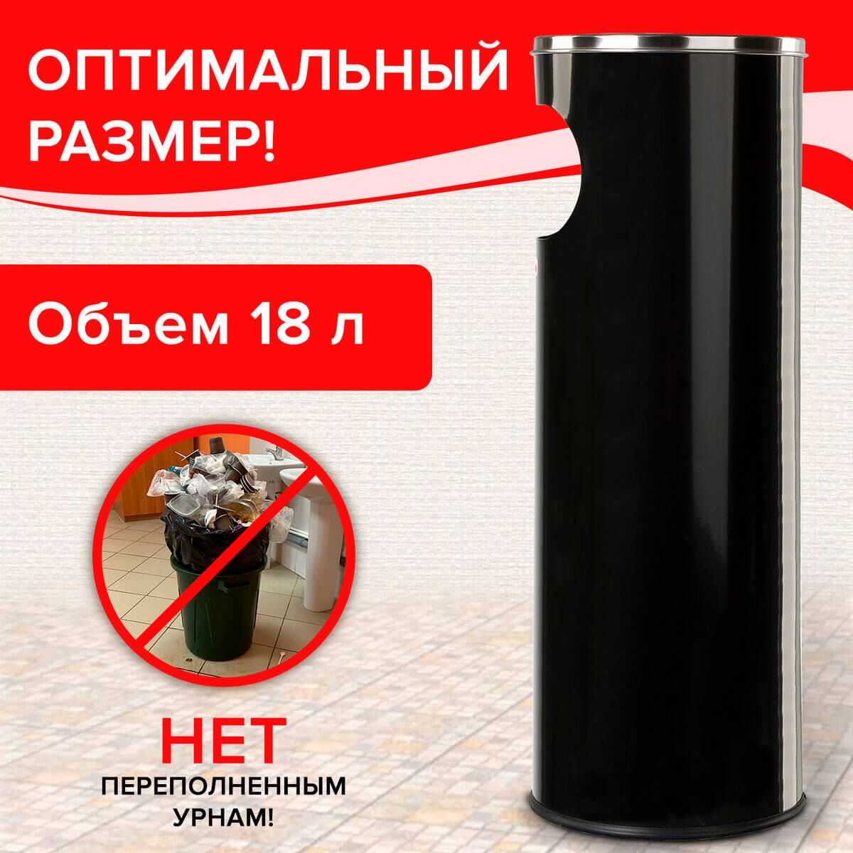 Урна с пепельницей 18 литров, нержавеющая сталь, черная, LAIMA PROFESSIONAL в Грозном